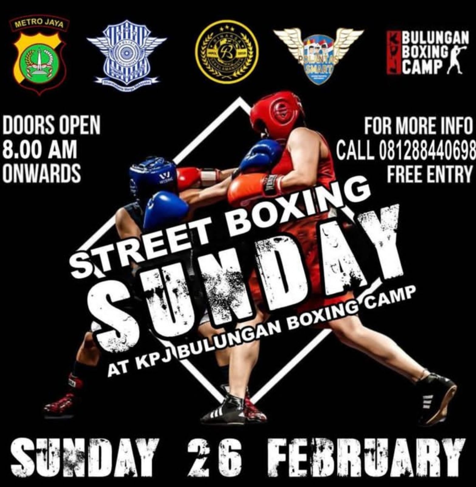 Acara kali ini dalam tajuk kegiatan Street Boxing Polda Metro Jaya di Kelompok Penyanyi Jalanan (KPJ) Bulungan Boxing Camp – Blok M, yang akan dilaksanakan pada Minggu, 26 Februari 2023.