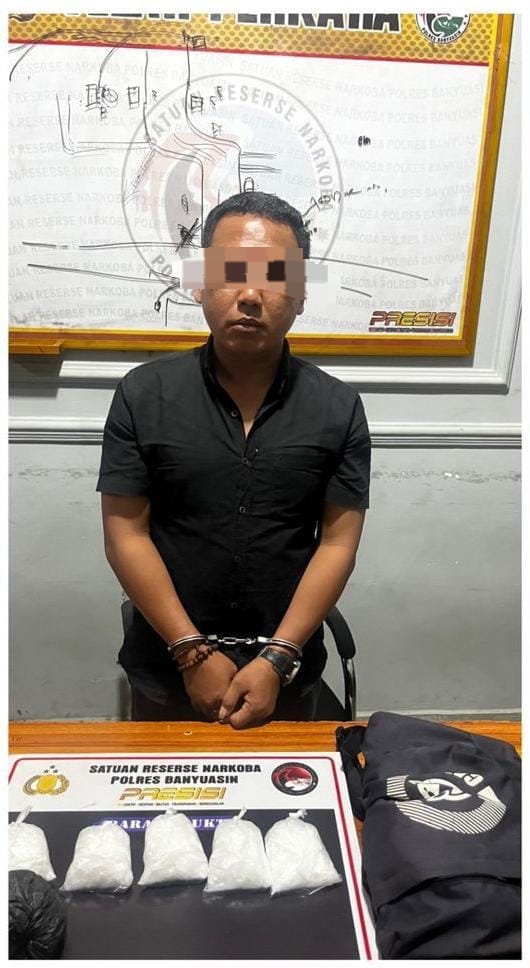 “Pelaku yang diduga kurir sabu ini saat diamankan Satreskrim Narkoba Polres Banyuasin didapati Barang Bukti (BB) berupa 5 paket yang diduga narkotika jenis sabu dengan berat bruto 488,19 gram, 2 buah kantong plastik warna hitam, dan 1 buah tas ransel warna navy,” jelas AKP Sutedjo.