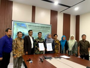 Agenda penandatanganan kesepakatan kerjasama ini diakhiri dengan penyerahan cendramata khas Aceh yang merupakan produk hasil karya mahasiswa USK yang sudah mendapat hak paten berupa tas dan parfum.