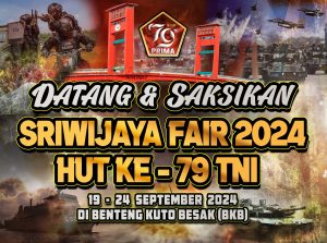 Dalam rangka memperingati dan memeriahkan HUT ke-79 Tentara Nasional Indonesia tahun 2024, Kodam II/Sriwijaya menggelar kegiatan bertajuk *“SRIWIJAYA FAIR 2024”*, bertempat di Pelataran Benteng Kuto Besak (BKB) Kota Palembang, selama 6 hari, mulai hari ini tanggal 19 hingga 24 September 2024.