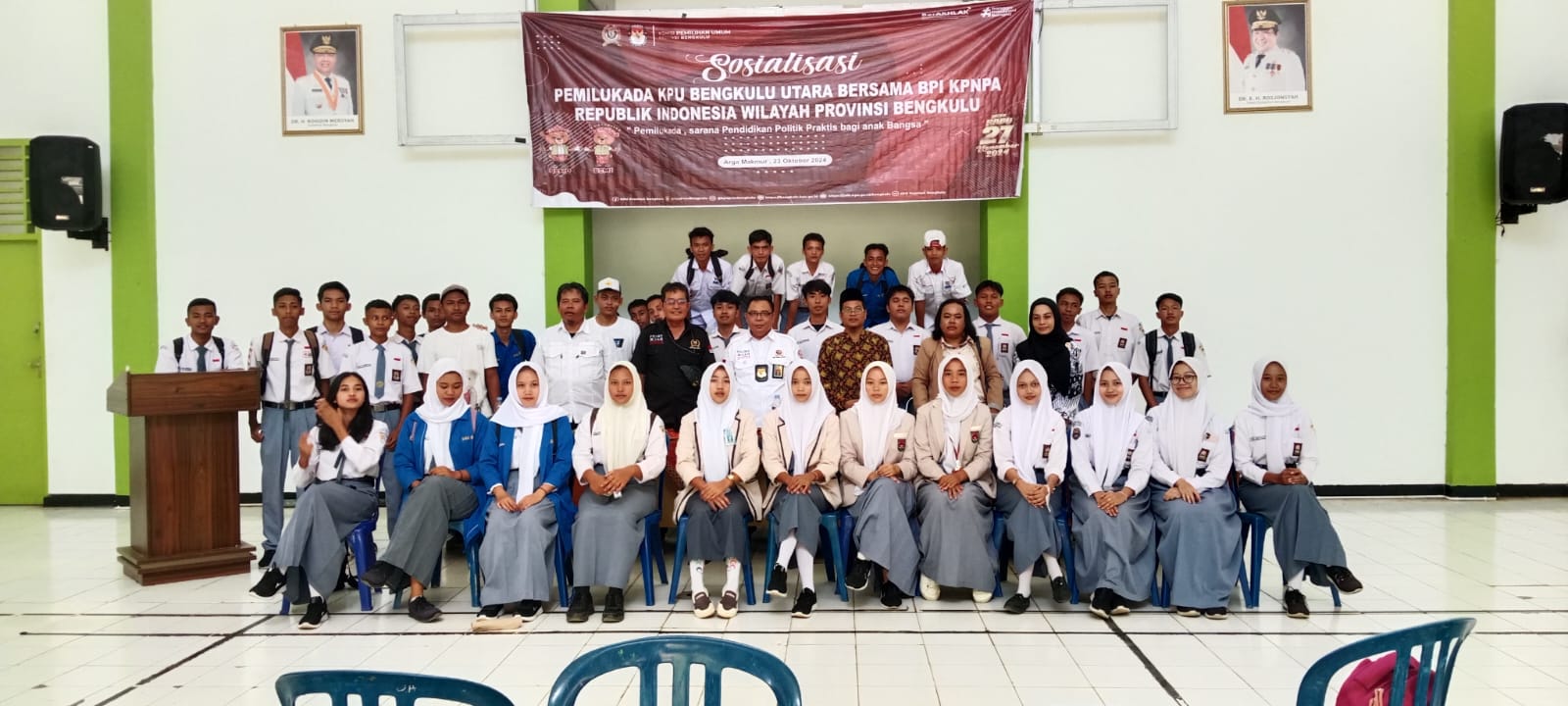Dalam rangka hari sumpah pemuda 28 Oktober 2024, KPU Bengkulu Utara bekerjasama dengan BPI KPNPA Republik Indonesia Wilayah Provinsi Bengkulu menyelenggarakan kegiatan sosialisasi Pemilu Kepala Daerah dengan segmentasi Pemilih pemula 28/10/2024 . Kegiatan yang di pusatkan di Aula SMKN 2/STM 2 Kota Arga makmur tersebut di hadiri lebih kurang 75 siswa kelas XI dan kelas XII dari sekolah menengah atas (SMA) dan SMKN se Bengkulu Utara.
