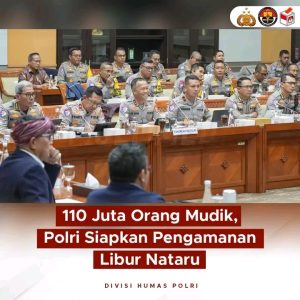 “Kita sudah melakukan survei persiapan-persiapan koordinasi dan ini kita sudah menyusun suatu regulasi sebuah keputusan bersama dari Bina Marga Dirjen Hubdat dan Korlantas. Ini nantinya regulasi ini akan menjadi panduan atau pedoman seluruh pemangku kepentingan dalam mengelola arus mudik arus balik, arus wisata selama Nataru 2024,” jelas Kakorlantas Polri dalam paparannya dalam RDP bersama Komisi III DPR RI di Gedung Parlemen Senayan, Jakarta.