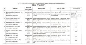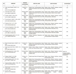 KESATU : Aparatur Sipil Negara yang Namanya tersebut dalam lajur 2, diberhentikan dari dalam jabatan lamanya sebagaimana tersebut dalam lajur 4 diangkat dalam jabatan baru sebagaimana tersebut dalam lajur 5, dan diberikan tunjangan jabatan struktural sebagaimana tersebut dalam lajur 6 daftar lampiran Keputusan ini.
