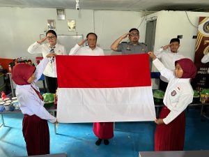 Kegiatan Hari Bhakti Imigrasi ke-75 di CLC SD Inderah Sabah diawali dengan pembentangan bendera merah putih oleh tiga orang siswi CLC, dilanjutkan dengan perbincangan bersama Konsul RI Tawau Aris Heru Utomo mengenai keindonesiaan di salah satu ruang belajar CLC.