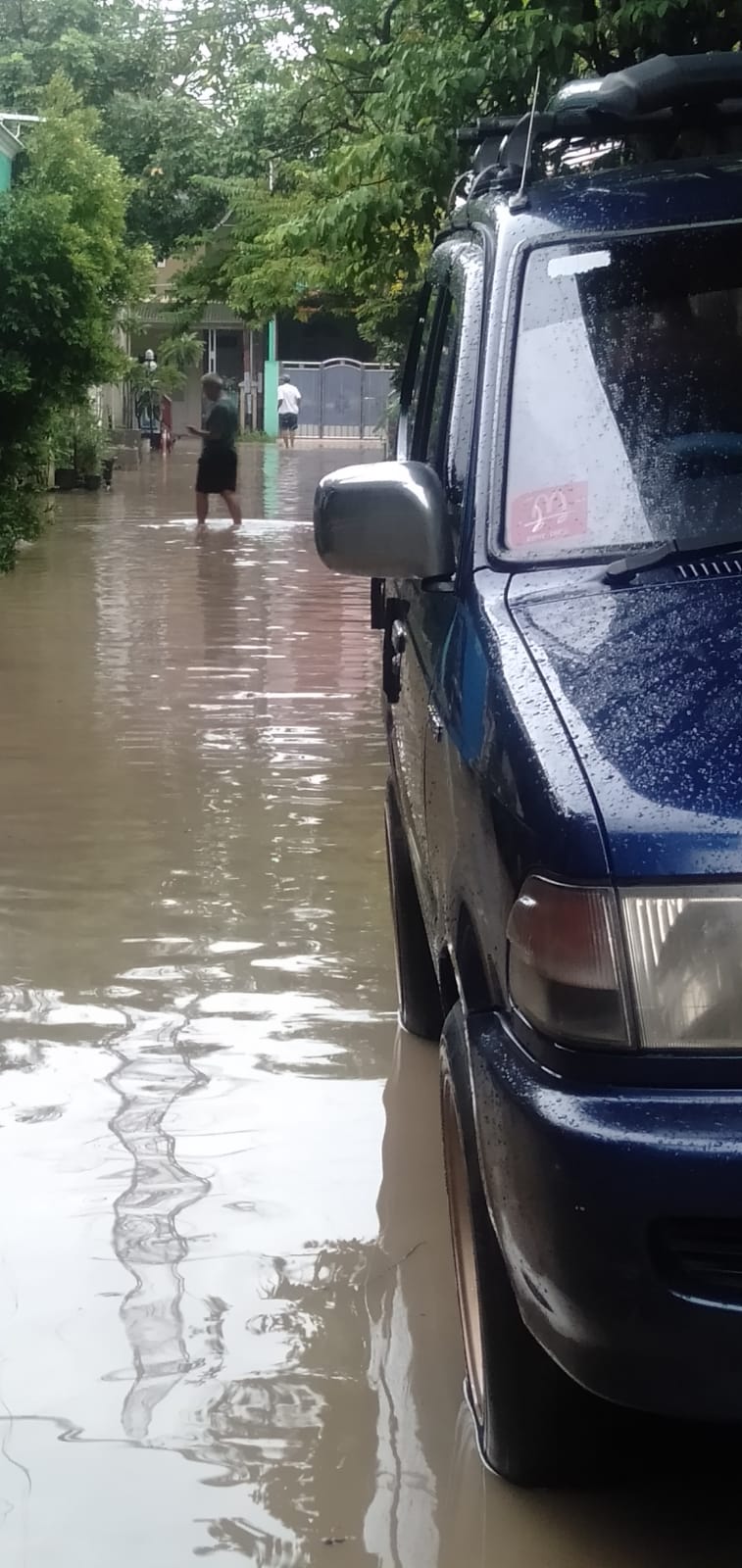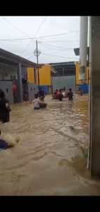 Bekasi – mediakota-online.com Semalaman hujan mengguyur kota Bekasi dan sekitarnya didalam kesibukan umat muslim menjalan ibadah puasa warga komplek taman wisma Asri dikejutkan Air meluap dari kali Bekasi ini sejarah bagi warga wisma Asri sampai ketinggian 30Cm sebagian Air sudah masuk rumah kendalanya kurang perhatian pemerintah kota Bekasi untuk mengeruk kali Bekasi dan sodetan Air diPerumahan Taman Wisma Asri tidak berfungsi kalau di lihat got saluran Airnya apa mau dikata ini ada musibah tidak bisa kita elakkan.