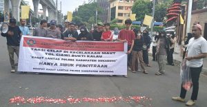 Dalam Penyampaian Aksinya Koordinator Aksi “Ali Moma” Menegaskan ” Ini sudah Ketiga Kalinya kami turun ke mabes polri untuk meminta kasat lantas kabupaten sukabumi di copot dari jabatannya. Adanya taxi gelap pada kecelakaan maut tersebut jelas merupakan kelalaian kasat lantas melakukan tindakan preventif terhadap taxi gelap di wilayah kabupaten sukabumi yang akhirnya menelan korban jiwa pada kecelakaan maut di gerbang tol ciawi.
