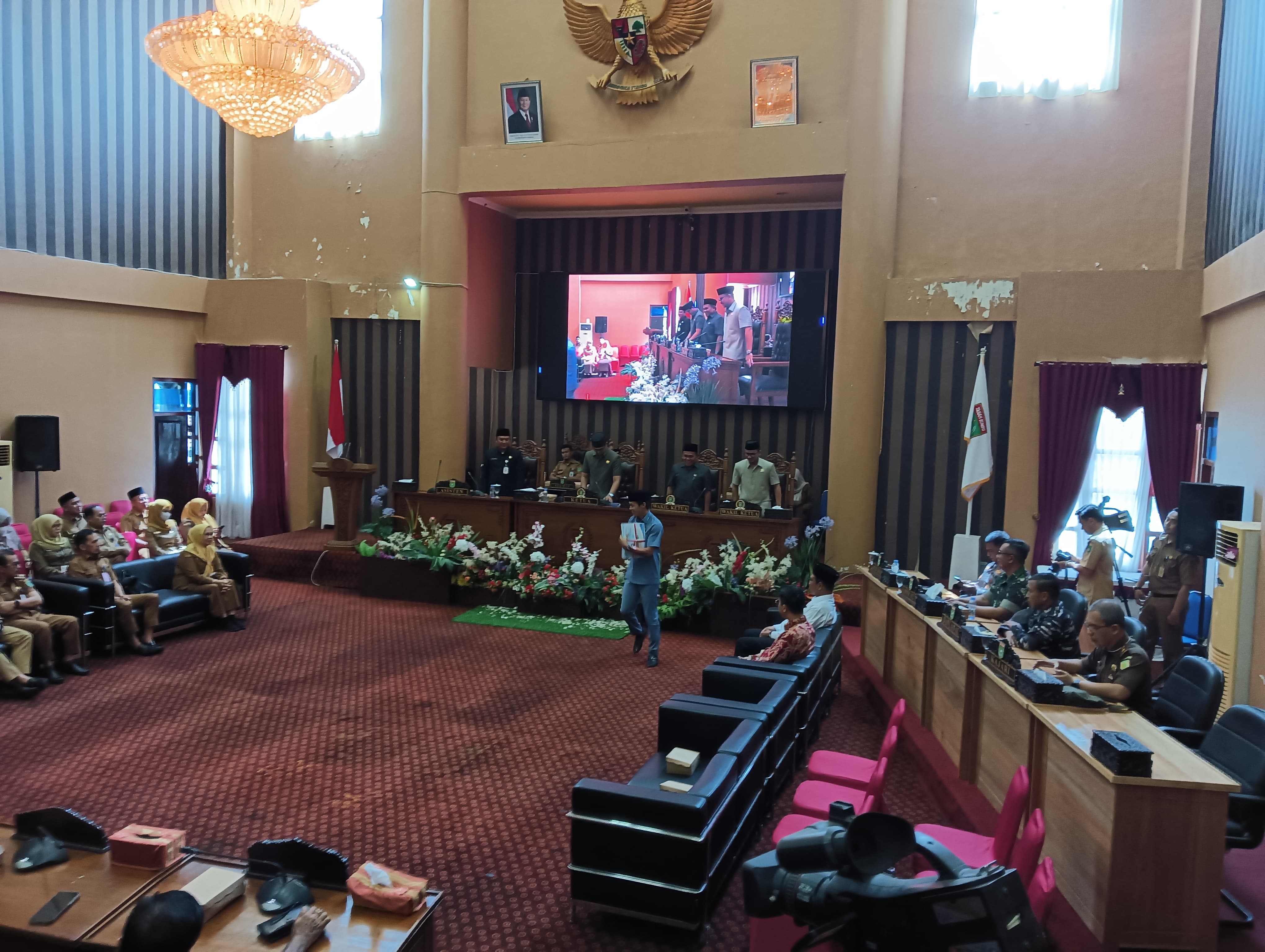 Rapat paripurna berlangsung khidmat sejak pukul 10.00 WITA, dihadiri oleh seluruh peserta yang mengenakan Pakaian Sipil Harian (PSH) lengan pendek, sesuai agenda resmi DPRD.”(Hallion)
