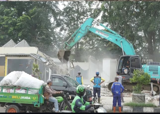Pemerintah Daerah Kabupaten Karawang bersama PT Kereta Api Indonesia (KAI) menertibkan kawasan Taman Ade Irma, Kamis (3/7/2025).
