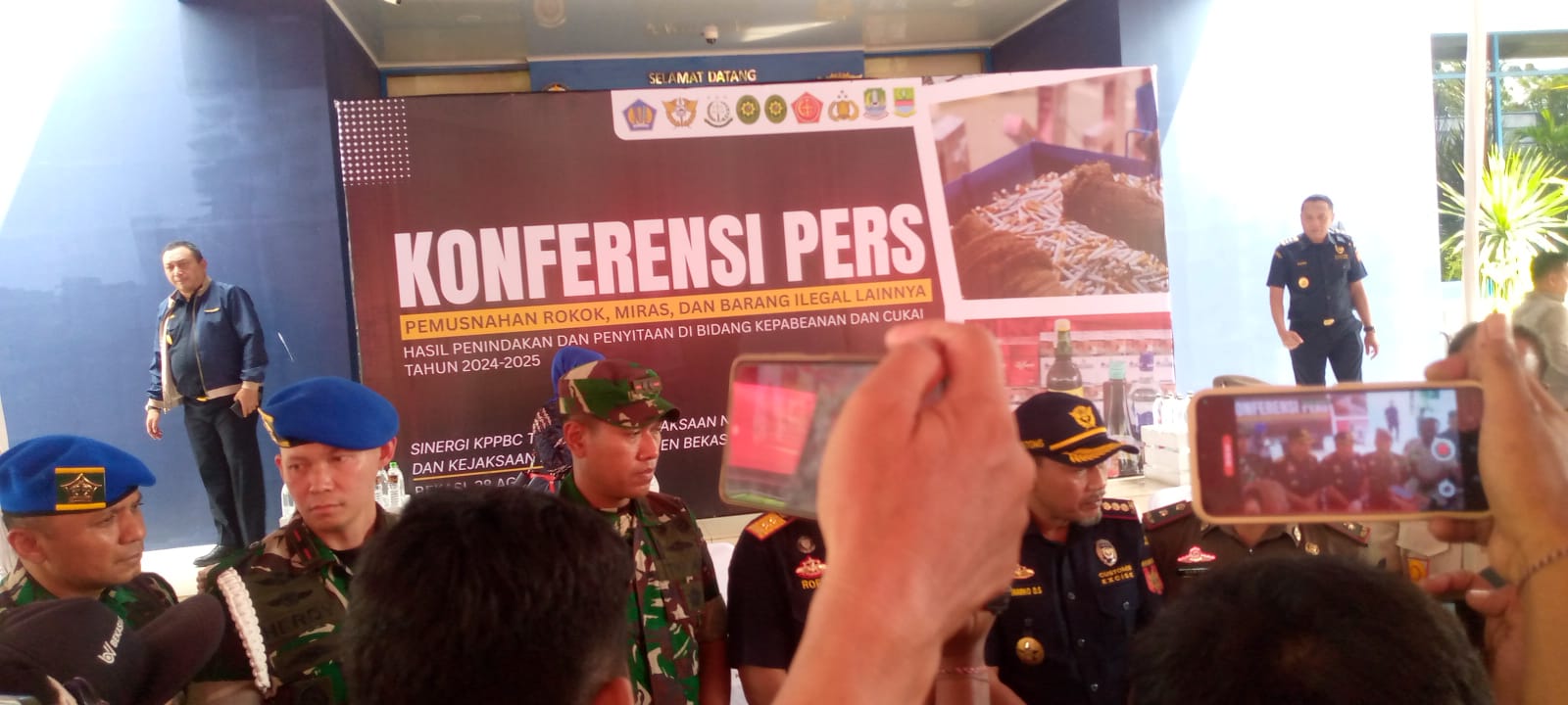 “Kegiatan ini dapat terlaksana berkat sinergi antara Bea Cukai Bekasi bersama-sama dengan Kantor Wilayah DJBC Jakarta, Satuan Polisi Pamong Praja Kota dan Kabupaten Bekasi, Polres Kota Bekasi dan Kabupaten Bekasi, Kodim 0507 dan 0509 Bekasi, Subdenpom Jaya/2-1 Kota Bekasi dan aparat penegak hukum lainnya. Berbagai operasi pemberantasan BKC berupa rokok dan miras llegal telah dilaksanakan dalam Operasi Bersama, Operasi Gempu Rokok ilegal 2024, Operasi Gurita 2025 dan Operasi Penindakan rutin Bea Cukai Bekasi c wilayah Kota dan Kabupaten Bekasi, dengan mengedepankan semangat kerja sama da kolaborasi.” ungkap Kepala Kantor Bea Cukai Bekasi, Winarko Dian Subagyo.