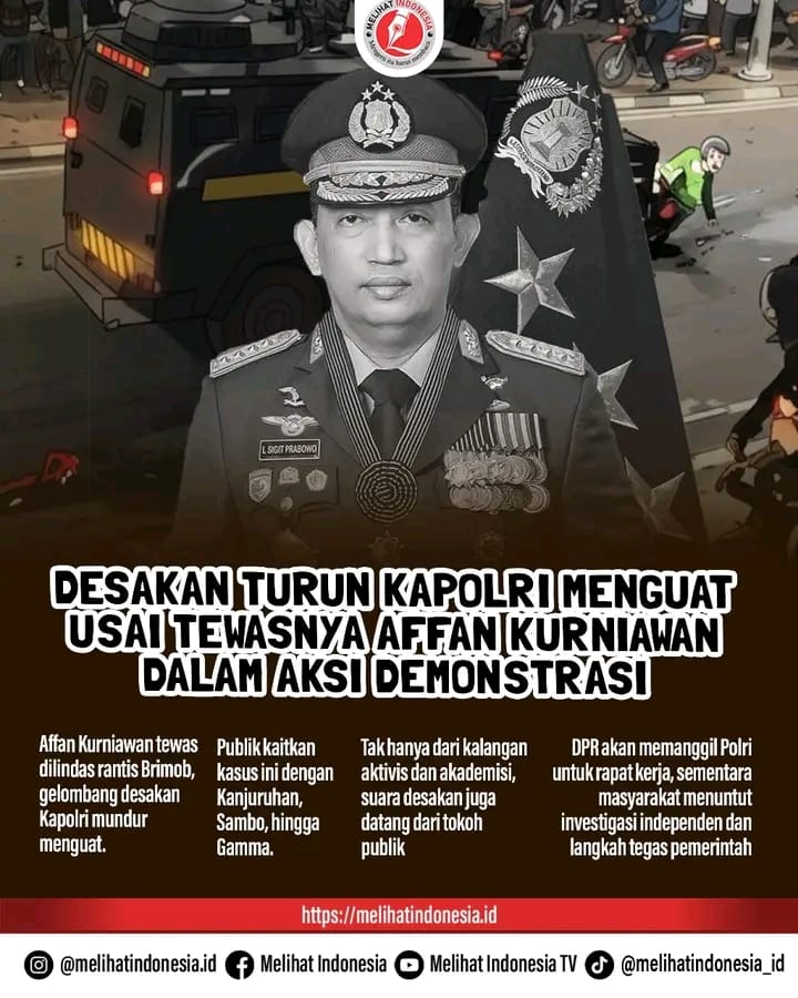 Gelombang desakan agar Kapolri Jenderal Listyo Sigit Prabowo mundur dari jabatannya semakin menguat pasca-insiden tragis tewasnya Affan Kurniawan, pengemudi ojek online yang menjadi korban dalam demonstrasi besar di Jakarta, Kamis (28/8/2025).
