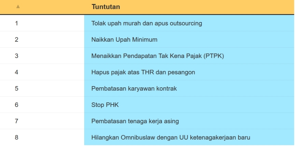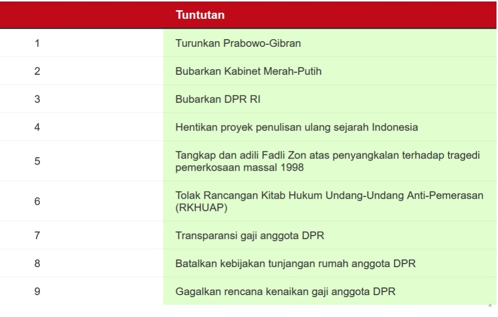 Tuntutan Demo Buruh Kamis (28/8/2025)