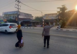 Polsek Indralaya Polres Ogan Ilir Pastikan Keselamatan Pelajar dan Pengguna Jalan di Pagi Hari